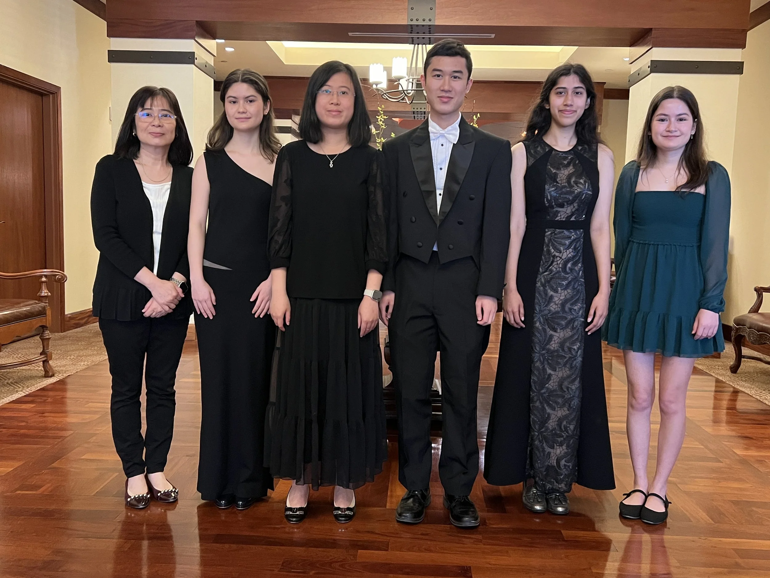The original 5 pianists with their teacher. Reunited Photo was taken after the recital at Longhorn Village on May 18, 2024. Left to Right: Julia, Amelia, Isabelle, Ira, Aditi, and Catelyn.