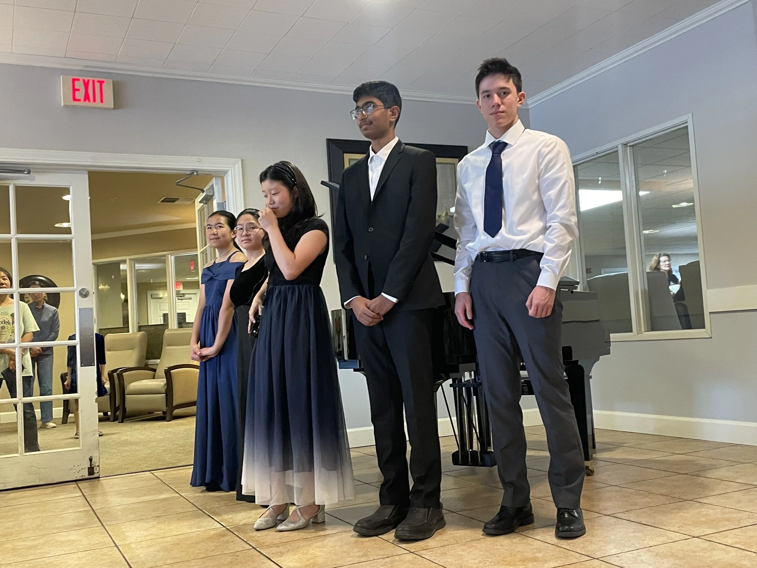 Left to right: Lucas, Samuel, Angela, Mahati, and Audrey. Atria at the Arboretum. Feb 21, 2026.